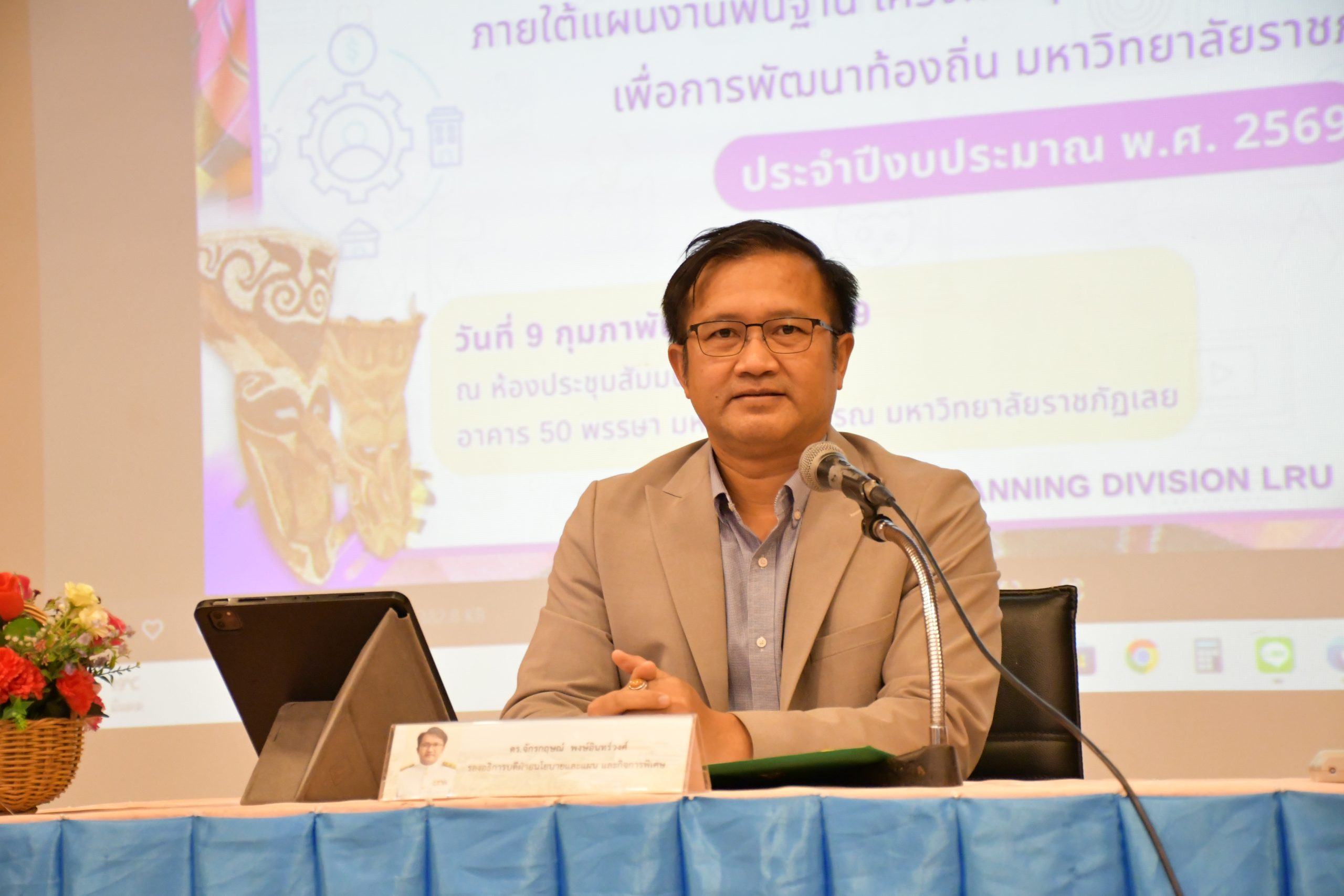 วันที่ 9 กุมภาพันธ์ พ.ศ. 2569 กองนโยบายและแผน มหาวิทยาลัยราชภัฏเลย จัดการอบรมจัดการความรู้ (Knowledge Management : KM) จัดซื้อจัดจ้างและแนวทางการเบิกจ่ายงบประมาณภายใต้แผนงานพื้นฐาน โครงการยุทธศาสตร์มหาวิทยาลัยราชภัฏ เพื่อการพัฒนาท้องถิ่นมหาวิทยาลัยราชภัฏเลย ประจำปีงบประมาณ พ.ศ. 2569 โดย ดร.จักรกฤษณ์ พงษ์อินทร์วงศ์ รองอธิการบดีฝ่ายนโยบายและแผน และกิจการพิเศษ เป็นประธานเปิดโครงการฯ
